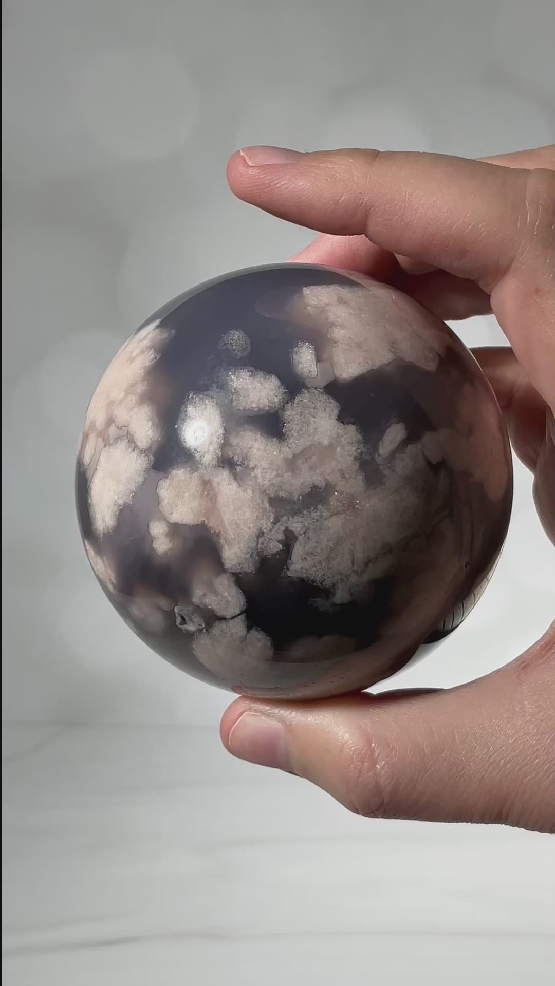 Black Flower Agate Sphere 2.8"-3.1"/72mm-81mm