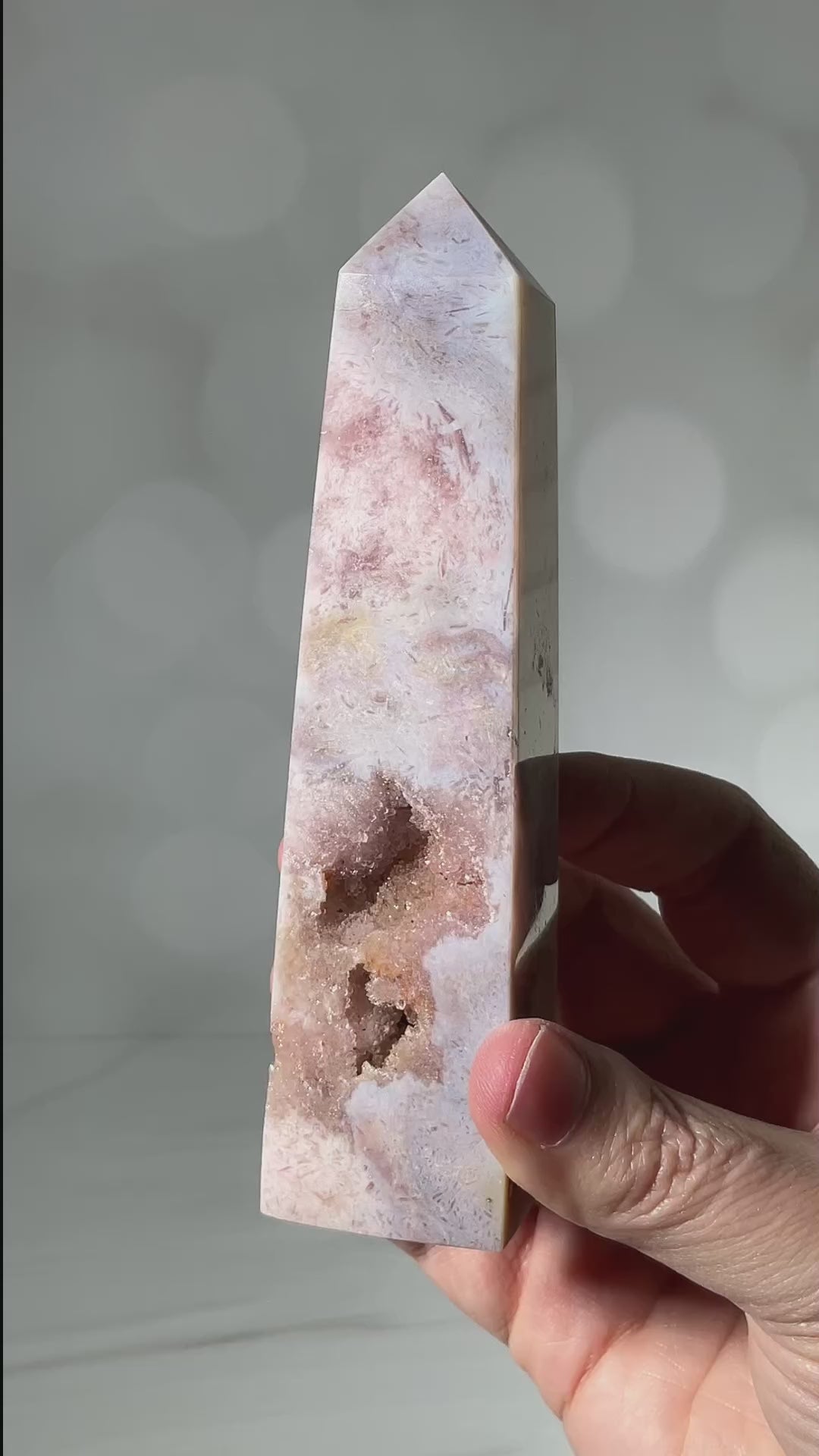 Pink Amethyst w/Flower Agate Tower w/Druzy 5"