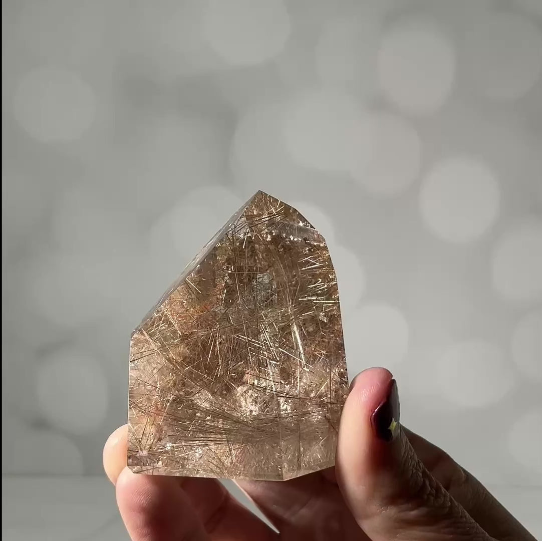 Brazilian Rutile Quartz, a powerful crystal for amplifying energy and intention. Infused with golden rutile strands, this gem from Brazil enhances mental clarity, spiritual growth, and emotional strength. Ideal for meditation and healing, it's a must-have for seekers of metaphysical wisdom and natural beauty.